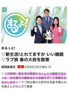 ・4/6(月)NHK総合・名古屋「まるっと」に生出演しました。