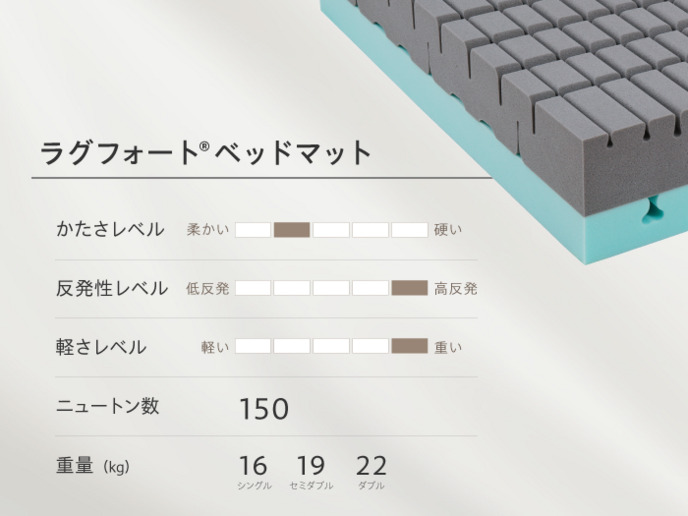 低めの凹凸構造を施した硬さの異なる2種類のウレタンフォームを3層に重ねることで、しっかりとした寝心地を実現。寝返りするたびに起こる体重移動や寝姿勢の変化にも柔軟に対応します。